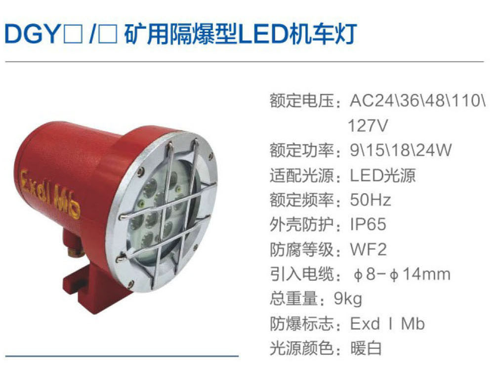 一、适用范围:主要适用于具有甲烷和煤尘爆炸危险的矿井下的蓄电池式电机车、掘进机、扒装机、铲煤机、装载机、钻车、胶轮车以及各种井下用防爆车辆等,供机车工作照明使用。