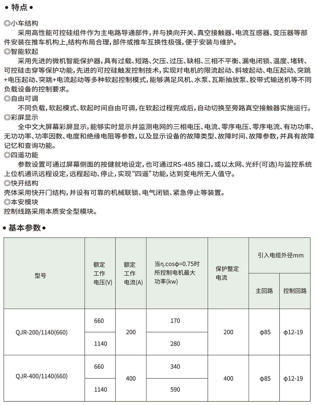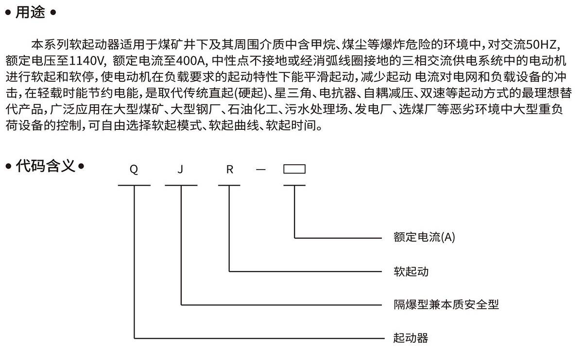 矿用隔爆兼本质安全型低压真空交流软起动器QJR-200/1140(660、380)