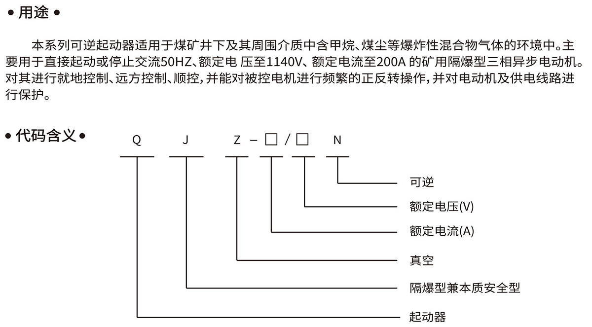 矿用隔爆兼本质安全型可逆真空电磁起动器QJZ-80/1140(660、380)N